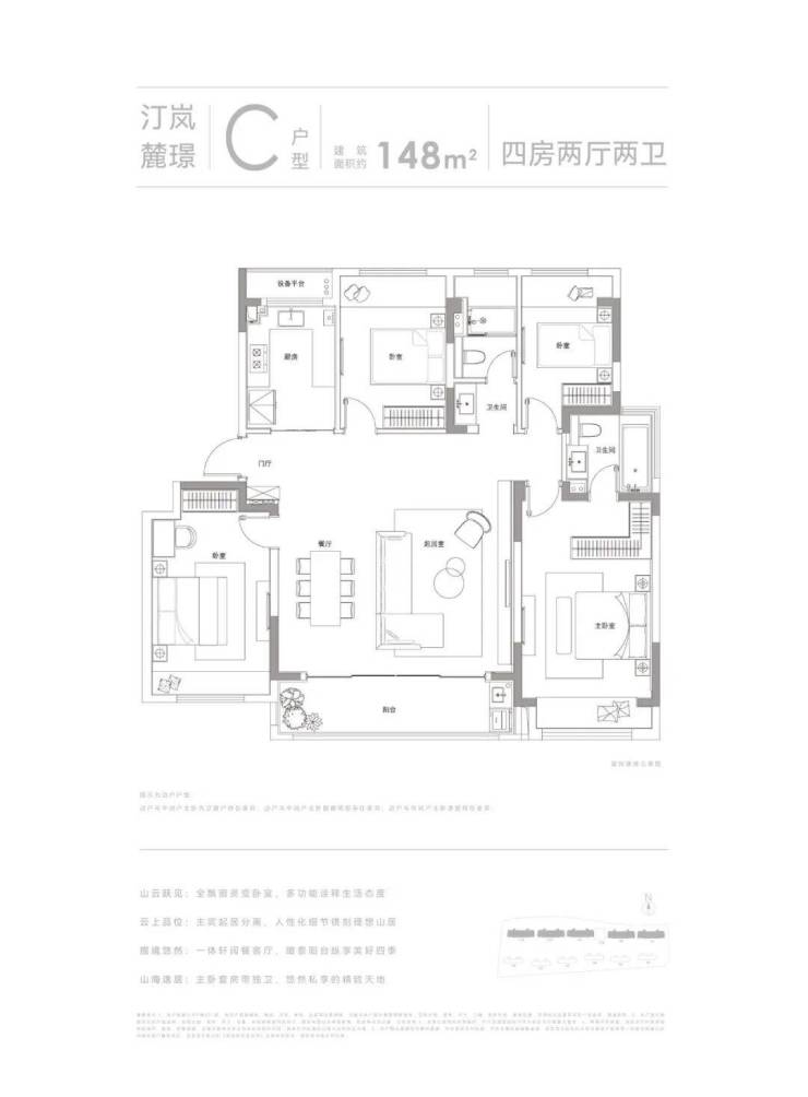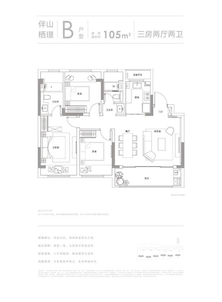 户型面积:约105㎡3房2卫、约148㎡4房2卫