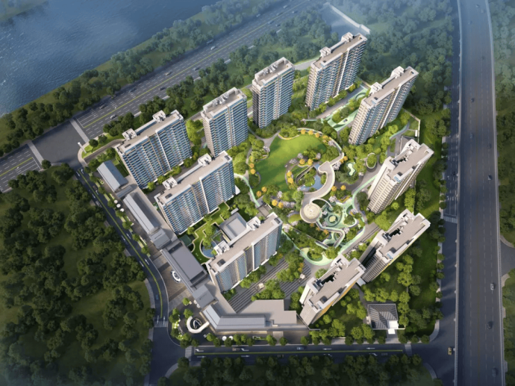 小区中央打造超大绿地与水景庭院,结合风雨连廊,营造“可游可赏、可玩可憩”的沉浸式社区环境。