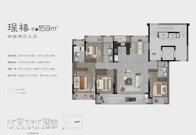 183㎡:4房2厅3卫,主卧套房+双主卧朝南。