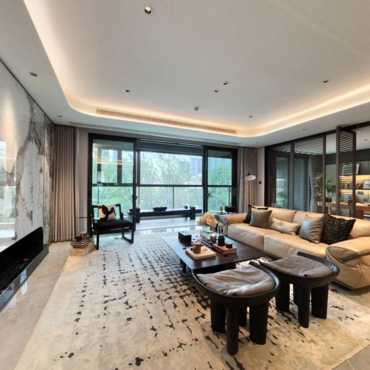 设计亮点:采用玻璃幕墙+铝板外立面,层高3.15米,全明卫设计,配置杜拉维特卫浴、西门子厨电等高端品牌