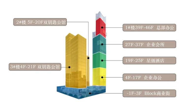 【规划】总建筑面积约15万方的复合城市,由1栋230米超高层和2栋高层组成,业态包括星级酒店、Block商业街、总部办公、企业会所、企业办公和精装双钥匙。
