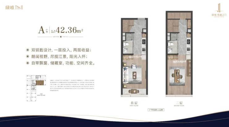 建筑面积约34-59㎡双钥匙公馆,买一层享两层,双倍空间,灵活多变,满足居住、办公、投资等多重需求,是杭州难寻的60万以下小户资产,且为实景准现房,小投入回报快,明星产品价值显著。