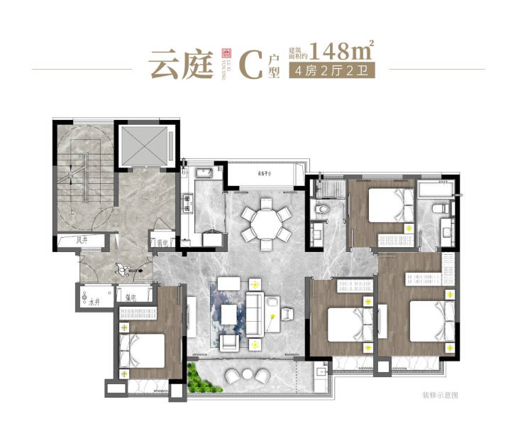 面积户型:约148㎡4房2厅2卫