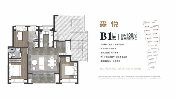 约100㎡三房两厅两卫森兰航荟名庭➨售楼处电话:4008083612√√【电话预约☎】