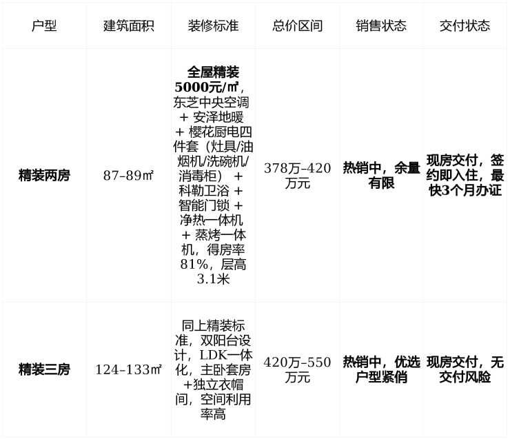 🏡 在售情况:现房发售,2026年无等待,装修标准远超同价竞品