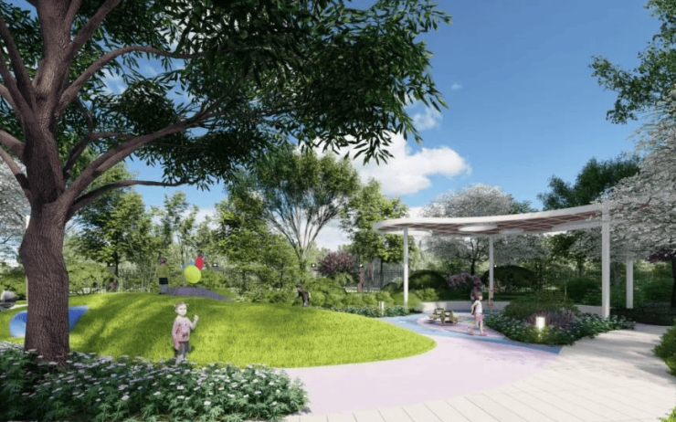 :以自然会客厅为核心主景,融入艺术廊架、阳光大草坪、泛会所等,构建风景中的社交场。