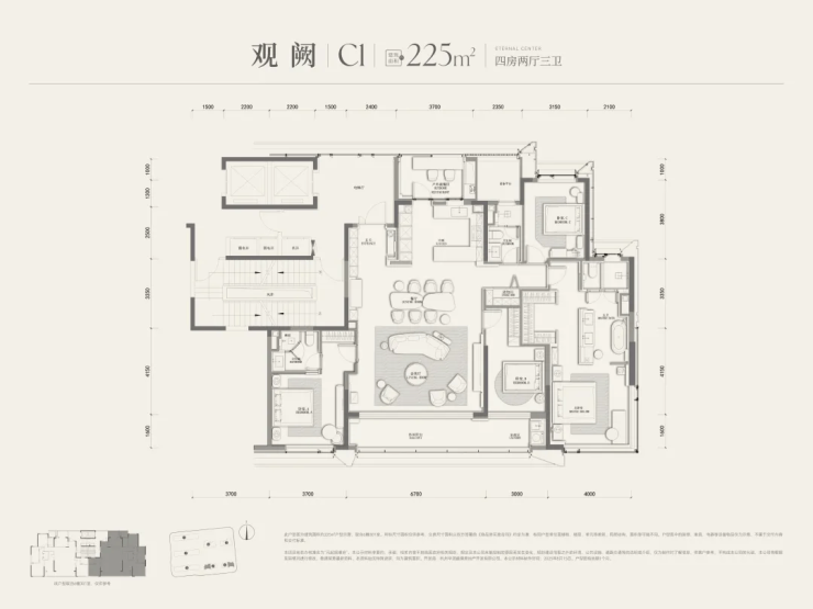 225㎡四房三卫:总价约1690万-1716万元,适合三口之家或三代同堂;