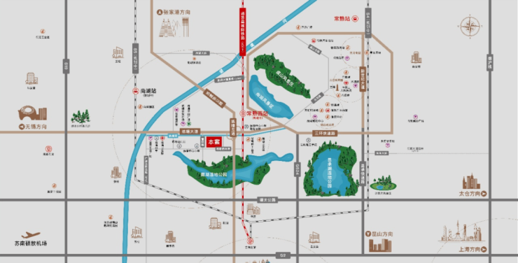 南湖湿地公园紧邻项目,步行可达,推窗见绿,是苏州难得的“湿地住区”;