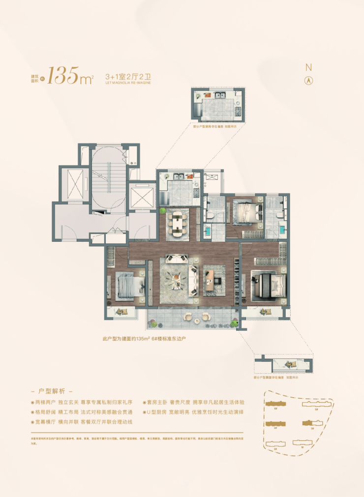 玉兰玖园总占地面积约2.61万方,总建筑面积约5.75万方,容积率仅为2.2,规划6栋18层小高层住宅,总户数466户。这样的低密规划,使得社区内楼间距宽敞,居住环境更加舒适宜人。同时,项目采用围合式布局,形成中心景观区,为居民提供更多的公共活动空间。