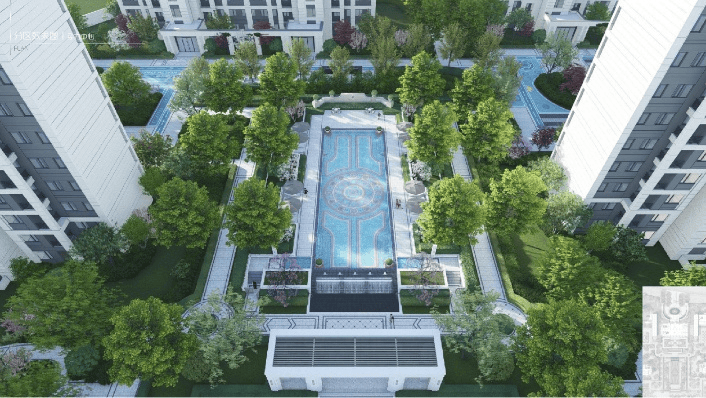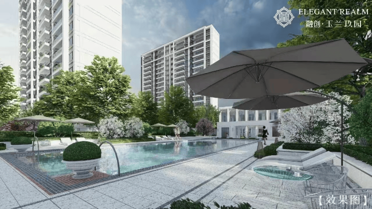 玉兰玖园周边自然生态环境优越,形成“一河多园”的生态格局。新开河公园拥有762米滨水绿带,配备健身步道,是居民休闲散步、健身锻炼的好去处;钱巷小游园作为社区口袋公园,为居民提供了近距离的绿色空间。项目内部绿化率高达30%,采用乔灌草立体种植,营造出宁静宜居的社区环境。特别值得一提的是,社区内还配备了约400㎡的中央泳池,夏季水温恒定28℃,采用循环过滤系统,为居民提供清凉舒适的游泳体验。