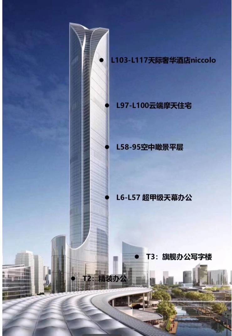 建筑高度:450米(江苏第一高楼,全球可售超高层住宅第一高度)