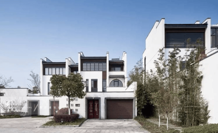 现代中式院墅风格,白墙黑瓦马头墙