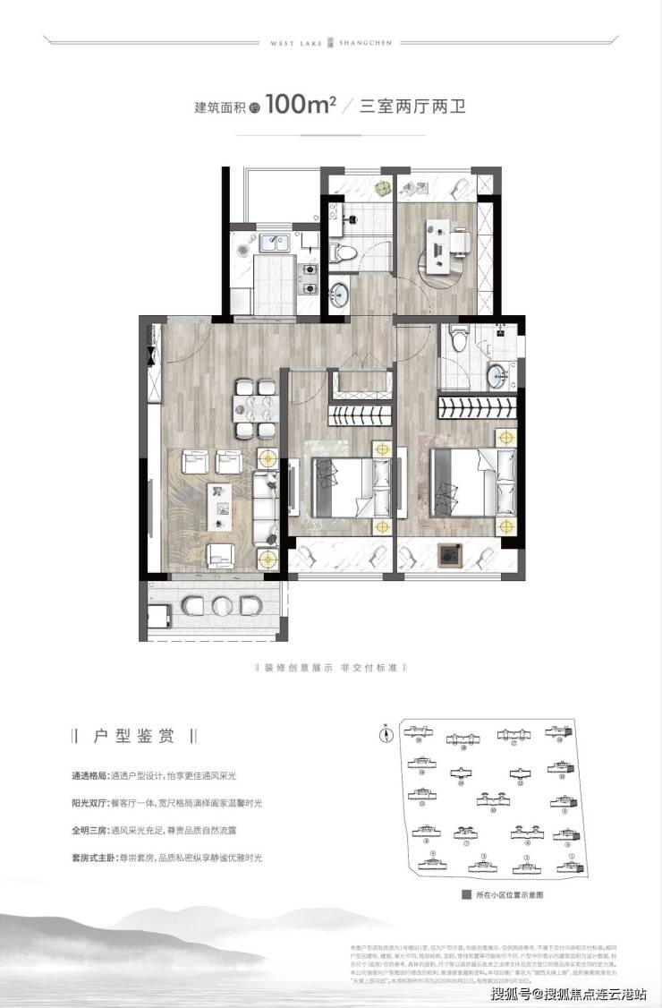 A2户型3室2厅2卫100m²
