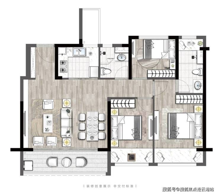 A1户型3室2厅2卫103m2
