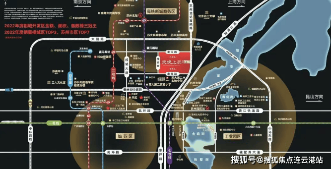 项目地处苏州中环大动脉上,项目交通优势十分明显,目前区域内已经形成了“三环一轨一隧道两高铁”的立体交通网络,三条快速路,两条地铁线,一条湖底隧道,两座高铁站。