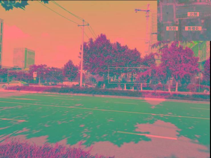 下图,从售楼处西侧,马路对面看售楼处。