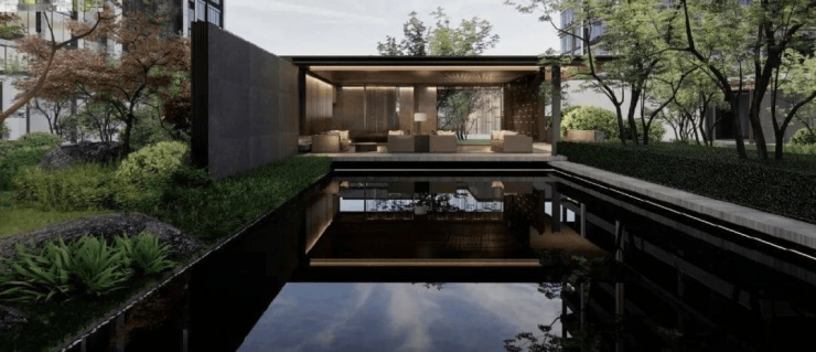 璞云东方摒弃传统项目沿底商横排布局的模式,采用纯原生“住宅化”打造理念,入户即可领略极具“安曼酒店风”的景墙、植被与镜面水系。