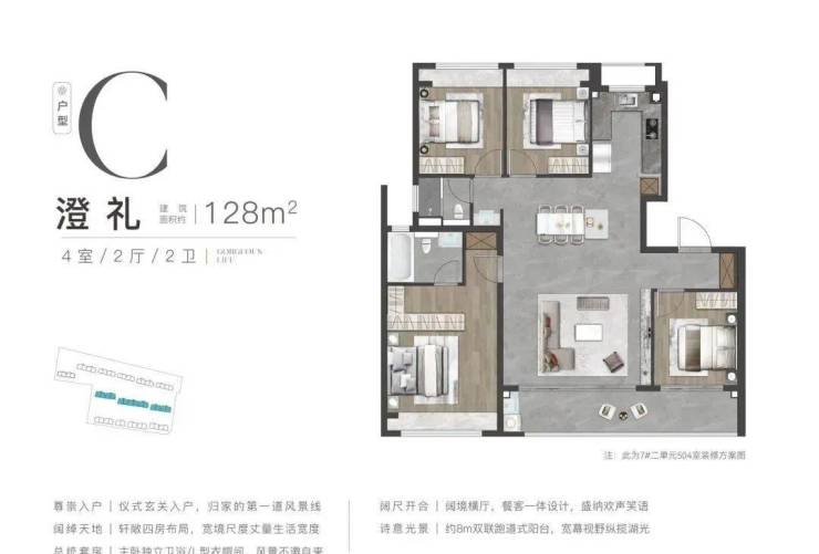 112㎡四房南北双阳台,128㎡方厅设计+8米双联阳台,改善尺度堪比大平层