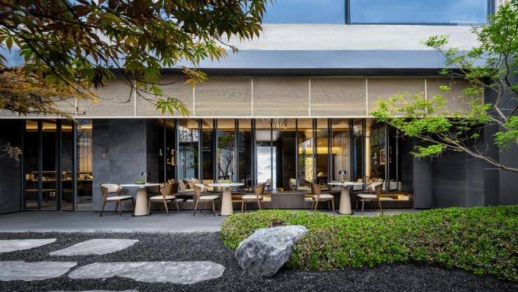 内部打造“东方十二胜景”园林,以苏式雅韵设计融合自然与人文景观,如竹苞松茂、舞雩亭等,营造诗意栖居氛围