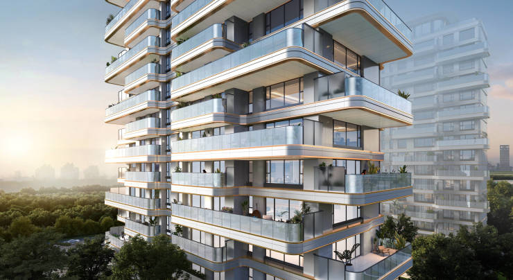 弧形立面,赠送15-35平空中露台,超270度、超6米挑高露台
