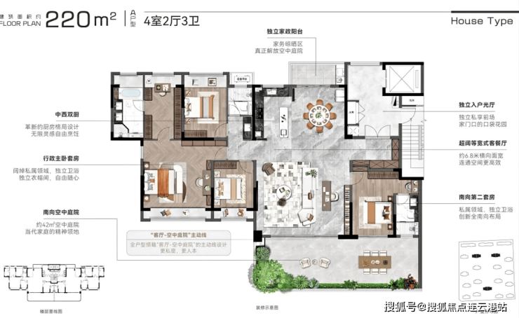 建面220㎡户型与185的方式差不多。