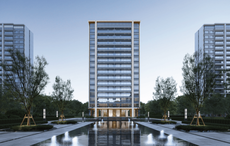 立面:首创惠山新城“流银质感立面”,采用一体板+局部金属铝板设计