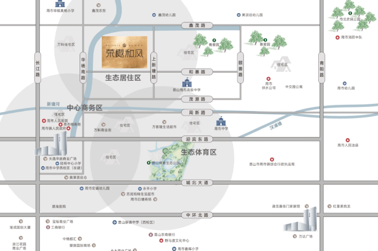 其他绿地 :周市樱花园、好人广场、尉州广场、市北农民公园(3公里内共5个)