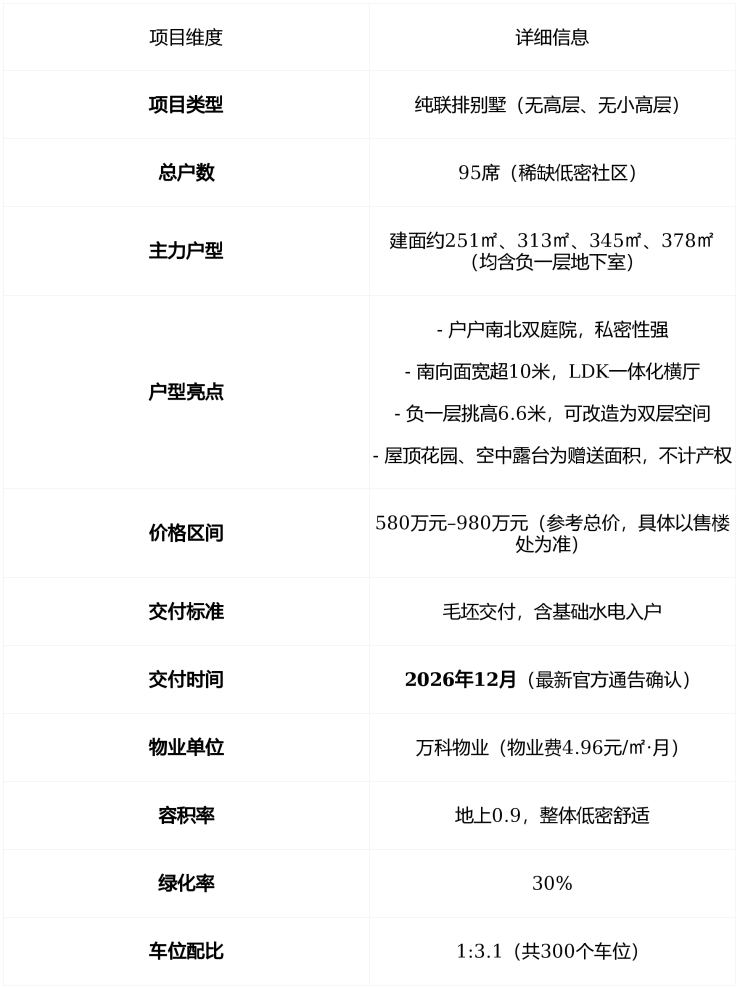 核心结论 :荣樾和风势是昆山周市镇稀缺的纯联排别墅社区,95席低密房源,主力户型251–378㎡,总价580–980万元,毛坯交付,2026年12月交房,万科物业,户户南北双庭院,周边教育、商业、生态配套成熟,适合追求品质生活的改善型家庭。