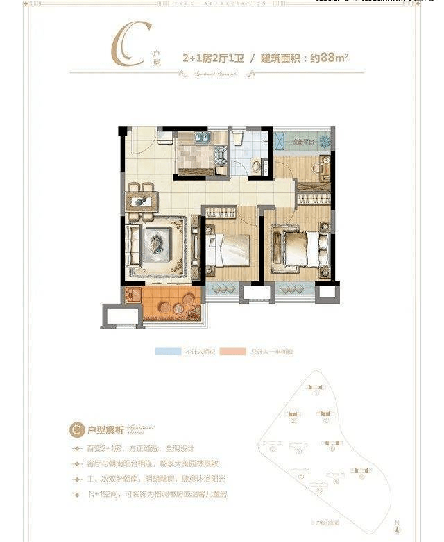 建面约88㎡户型图
