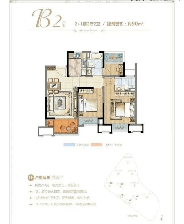 建面约90㎡户型图