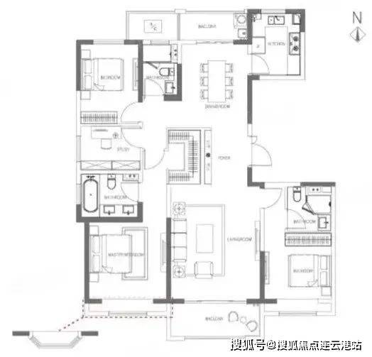 在售面积段144-173㎡三到四房。