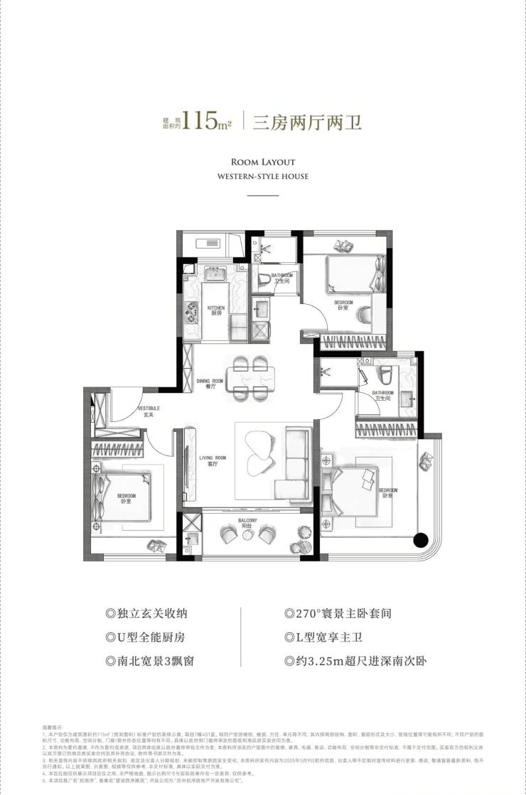 园区湖西纯洋房115户型 环景主卧套间