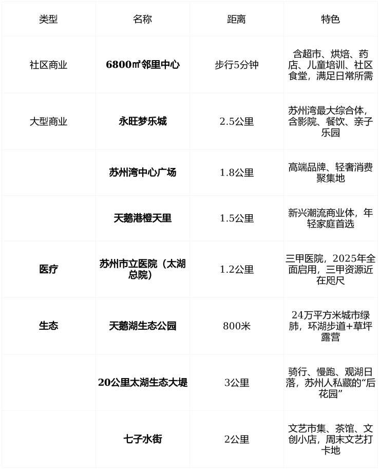 全龄教育圈 :周边覆盖优质幼儿园、国际学校(如苏州北美国际高级中学),形成“15分钟教育闭环”