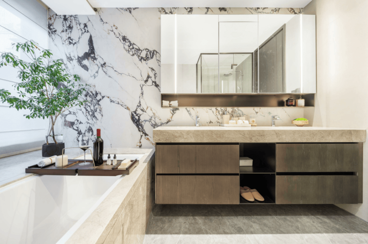交付标准:精装交付,配备国际品牌建材与高端厨卫设备
