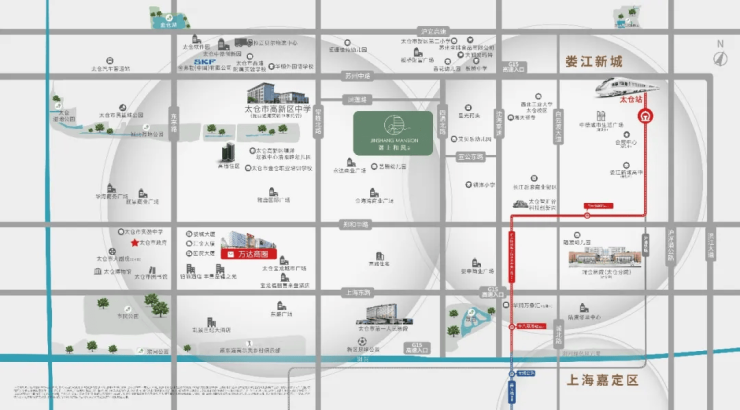 项目位于娄江新城发展轴与万达商圈交汇处,直线距离万达广场约2.3公里,距娄江新城核心区约3.1公里,既能享受成熟商业配套,又具备未来城市发展的成长空间 。