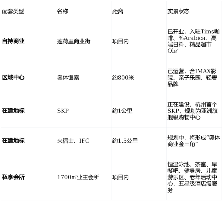 真实场景 :业主晨起步行5分钟至%Arabica买咖啡,傍晚携子至莲荷里用餐,周末赴SKP(在建)购物,生活半径内完成全龄消费闭环。
