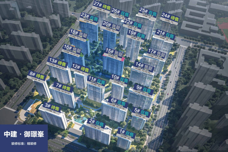 中建御璟峯是由中国建筑旗下中建国际与中建东孚(中建八局子公司)两大央企联袂开发的高端改善住宅项目,位于苏州高新区科技城诺贝尔湖公园北侧(阳宝山路与天佑路交汇处)。项目占地11.49万㎡,容积率2.0,绿化率37%,规划26栋15-25层住宅,共1492户,车位配比1:1.86