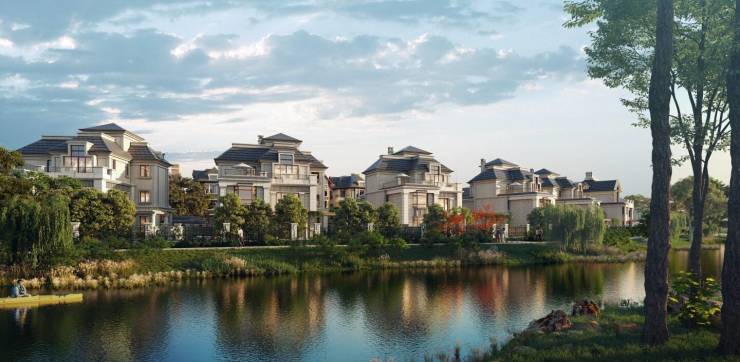 产品类型:含8栋法式独栋(建面547-646㎡)和24套英伦双拼(建面383-394㎡),私家花园面积400-600㎡。