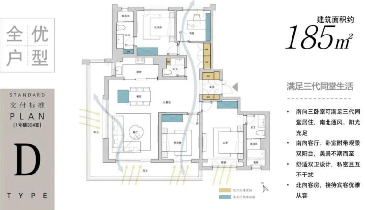 精装交付标准:包含新风系统、日系工艺及集中供能冷暖系统(11月15日-3月15日供暖,5月-9月供冷)