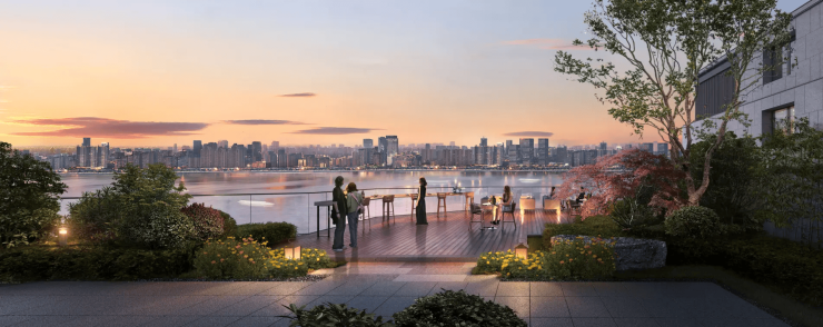 绿城春江潮鸣是绿城中国在杭州主城限购区内打造的唯一现房交付的江景排屋社区。项目总户数仅87席,容积率低至0.55,是杭州近十年来的最低容积率项目之一。这样的规划使得每一户都能享受到充足的阳光和开阔的视野,真正实现了“离尘不离城”的塔尖生活范式。