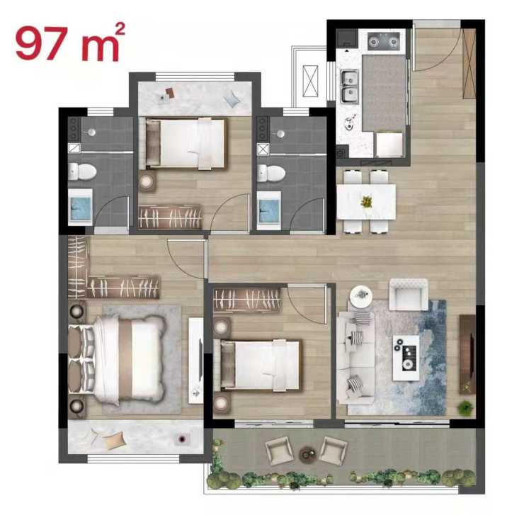 D3室2厅1卫90m2