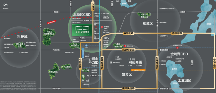 快速路网 :中环西线、中环北线、春申湖快速路及312国道构成"一纵双横"路网,15min直达新区高铁站,高效衔接长三角核心城市