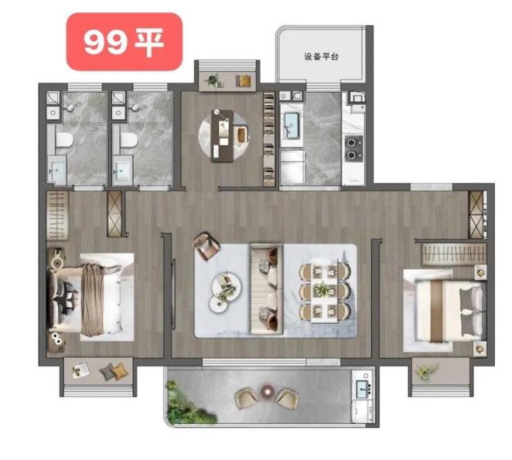 采用朗诗“三恒科技系统”(恒温18-26℃、恒湿30-70%、恒氧),搭配天棚辐射、地源热泵、新风系统等10大科技,物业费合计7.4元/㎡·月