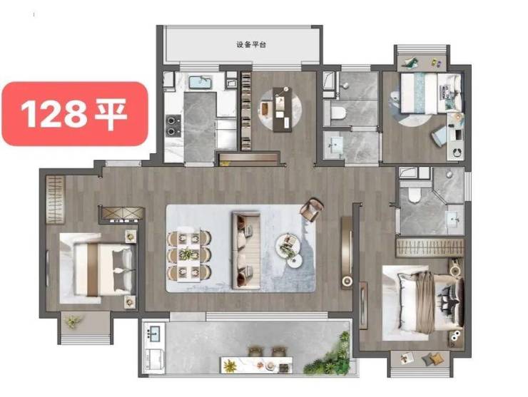 小高层:128㎡四房(总价315万-330万)