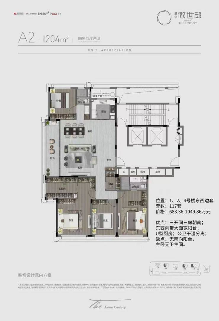 户型面积单价总价备注四居204㎡4.7万/㎡约943万起精装交付,冻资300万起