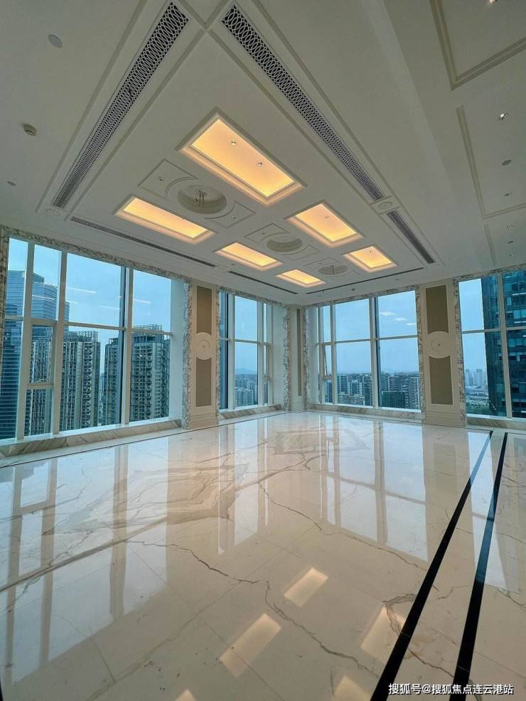 顶跃复式:418㎡顶层复式(实得约750㎡),层高6.3米,含6套房+1书房,配备私人直升机停机坪