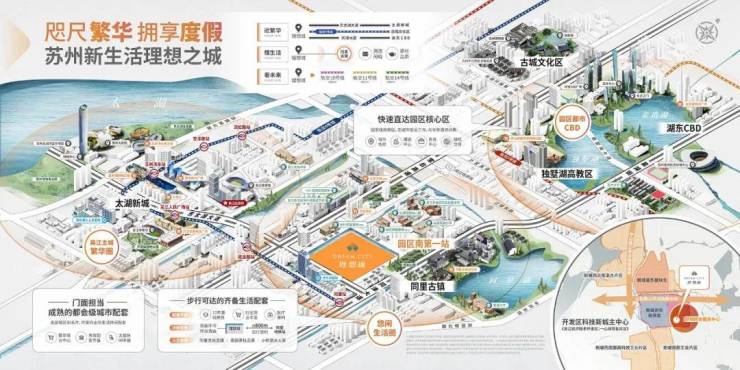 项目紧邻江陵快速路、同津大道、东太湖大道及友新高架 ,通过这些城市快速路,15 分钟即可直达苏州主城区 。无论是自驾前往市区工作、购物,还是周末驾车出游,都能节省大量时间,形成高效的 “半小时都会生活圈” 。