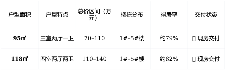 ✅ 温馨提示 :所有房源均为 毛坯交付 ,无精装包,装修自由度高。现房可随时预约看房,户型完整,采光真实,建议优先选 南向中高楼层 。