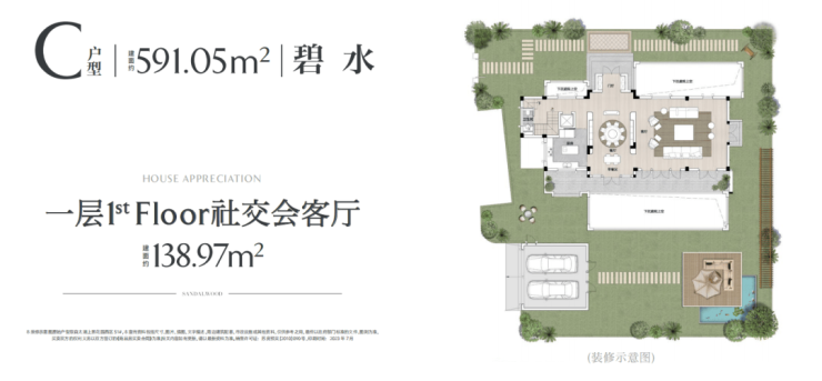 一楼的院子,户均占地1亩,面积是市面常规院落的3倍多,甚至能装下家庭泳池。