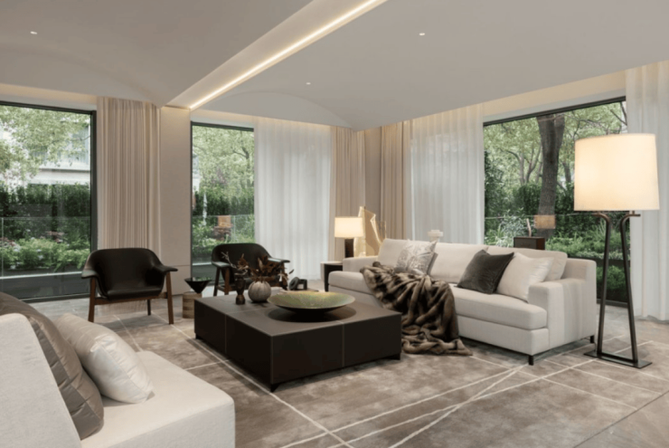 由贝尔高林景观设计院主持规划,历经十年生态培育期,形成立体植被群落。项目配备三级景观体系:首层私属庭院(120-200㎡)、空中观景露台、顶层星空会客厅,实现270度环幕视野。